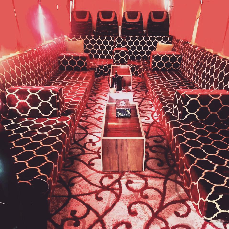 مقاعد VIP فاخرة ومريحة وطاولات وكراسي متقابلة وجلسات كنب